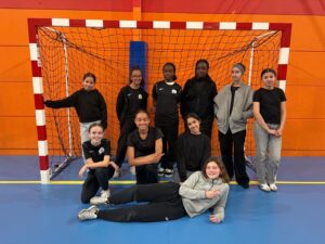 De l’autre côté du collège, se jouait un second tour départemental en handball féminin. L’équipe fraîchement créée n’a pas à rougir de ses résultats sur le tournoi et malheureusement s’arrête aux portes de la finale départementale avec 2 défaites.